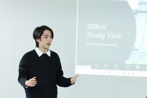 Next, in the overseas trip reports, three students who participated in international programs supported by SPRING this year took the stage. Their reports covered a wide range of topics for each program—RENKEI (held in the UK), SACRU (held in Italy), and MIRAI (held in Sweden)—including academic sessions and workshops, networking opportunities on-site, and even the local cityscapes, cultures, and cuisine. All presentations were delivered in English. Through presentations incorporating photos and anecdotes, attendees gained a vivid sense of the learning and experiences gained overseas. The reports conveyed a powerful message: “We strongly encourage everyone to take on this challenge next year” and “We hope you broaden your knowledge abroad and cultivate an international perspective.” This filled the entire venue with a positive atmosphere.