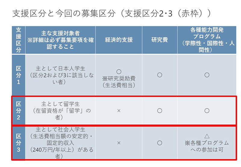 支援区分と今回の募集区分