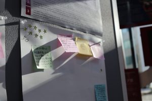 研究に関する3つの質問に答えたポスターを掲示し、来場者がポストイットでコメントを寄せることで、思いがけない知の対話が生まれました。
