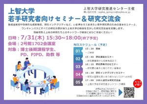 2025年7月31日、対面形式(日本語・英語)で、「上智大学若手研究者向けセミナー&交流会」を実施しました。